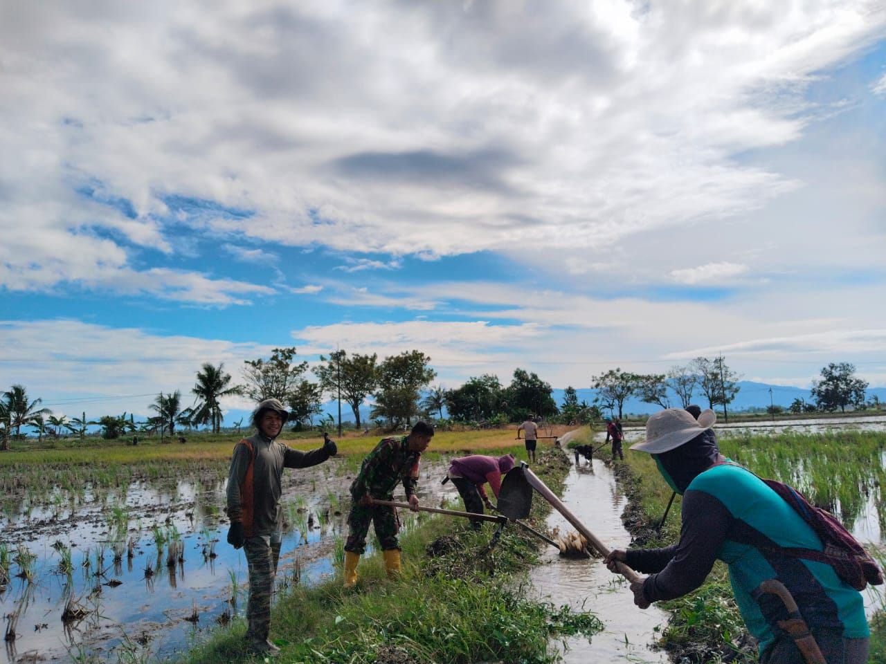 Sertu Rahmat mengatakan kerja bakti ini merupakan salah satu upaya untuk menyukseskan program ketahanan pangan bersama Kelompok Tani dengan membersihkan saluran Irigasi supaya tidak tersumbat yang dapat menyebabkan saluran air kurang lancar.