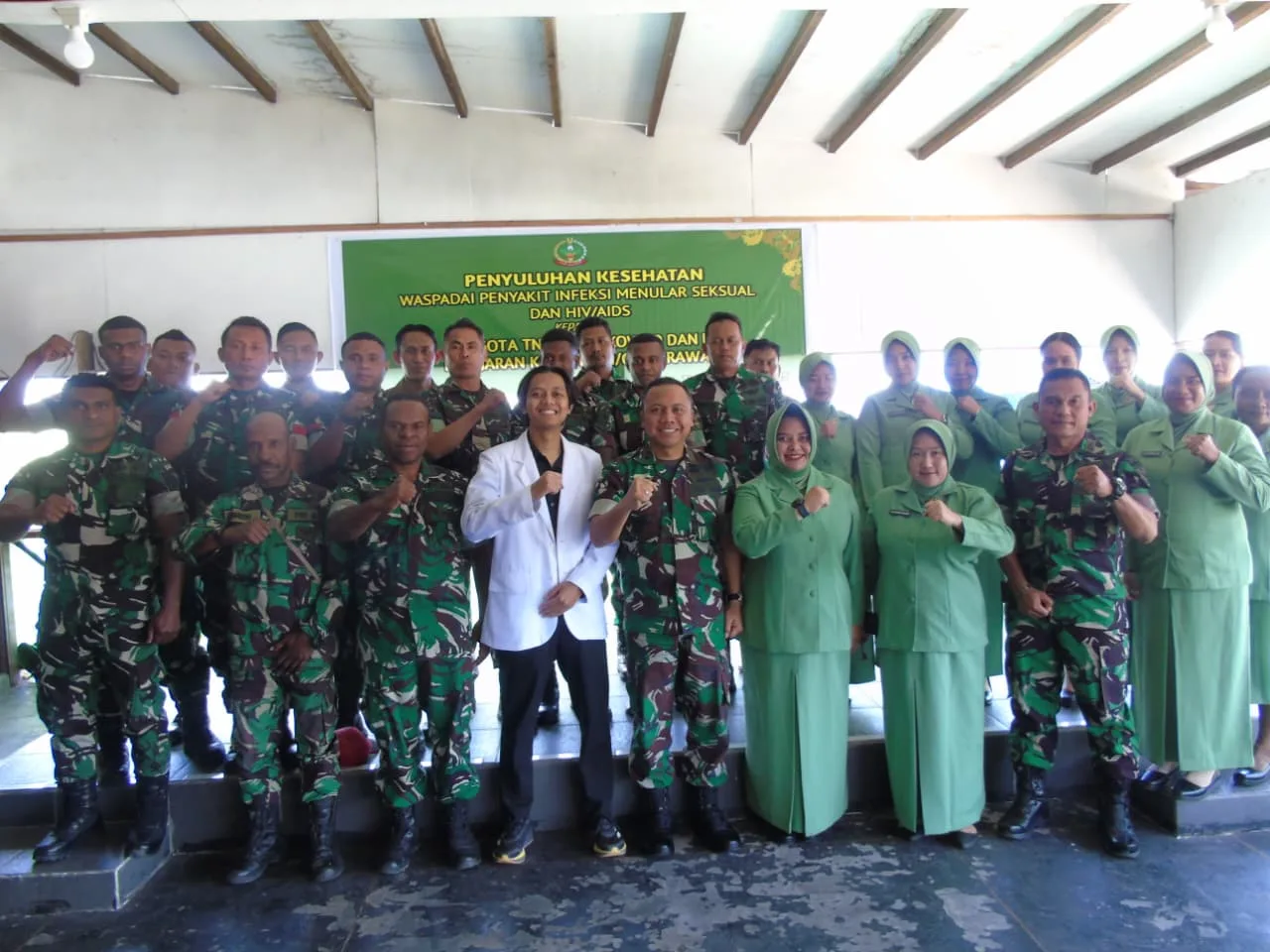 Deiyai – Pelaksanaan kegiatan Penyuluhan Kesehatan Waspadai Penyakit Infeksi menular Seksual dan HIV/AIDS kepada Anggota TNI, Persit, Kowad dan PNS di jajaran Kodam XVII Cenderawasih, yang diselenggarakan oleh Kodim 1730/Deiyai, yang memberikan Penyuluhan,Dr Adin Nurhuda (Dr Umum RSUD Pratama Waghete).