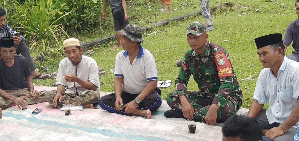 Simeulue – Babinsa Posramil Teupah Barat Koptu Ahmad Rison menghadiri acara kegiatan Kenduri Blang musim tanam Tahun 2025 yang bertempat di lahan pertanian Desa Angkeo ec. Teupah Barat, Sabtu (26/04/2025).