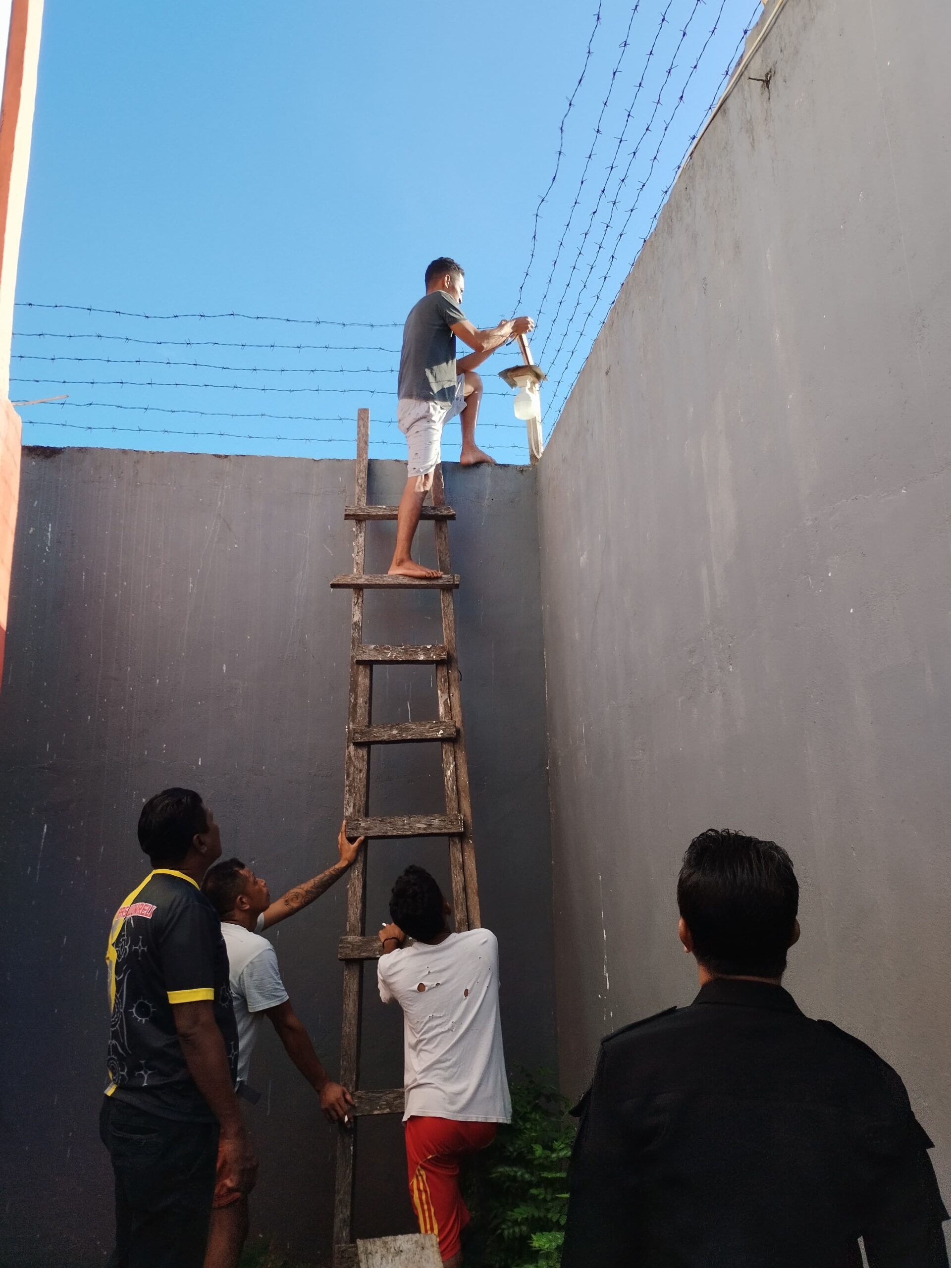 beberapa paku yang sudah mulai korosi diganti dengan yang baru agar tetap kuat menahan kawat duri, Kalapas menghimbau agar petugas penjagaan lebih giat lagi melakukan pengontrolan ke area pos belakang dan tembok demi untuk memastikan keamanan Lapas Kelas III Wonreli yang lebih baik lagi.