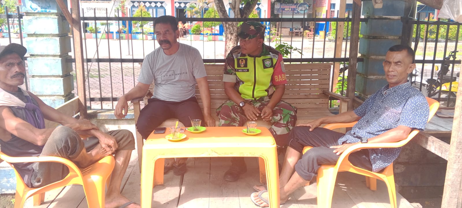Dalam suasana yang akrab dan penuh kekeluargaan, Serda T. Mulyadi berdialog langsung dengan warga terkait berbagai hal, mulai dari situasi keamanan lingkungan, kondisi sosial masyarakat, hingga edukasi kebangsaan dan bela negara.