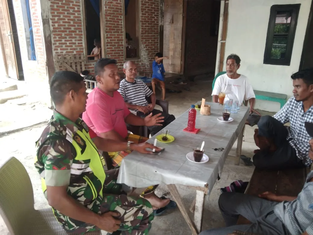 Dalam kesempatan tersebut, Sertu Murdani berdiskusi dengan tokoh masyarakat, pemuda, dan perangkat desa mengenai kondisi keamanan, perkembangan lingkungan, serta berbagai persoalan sosial yang dihadapi warga.