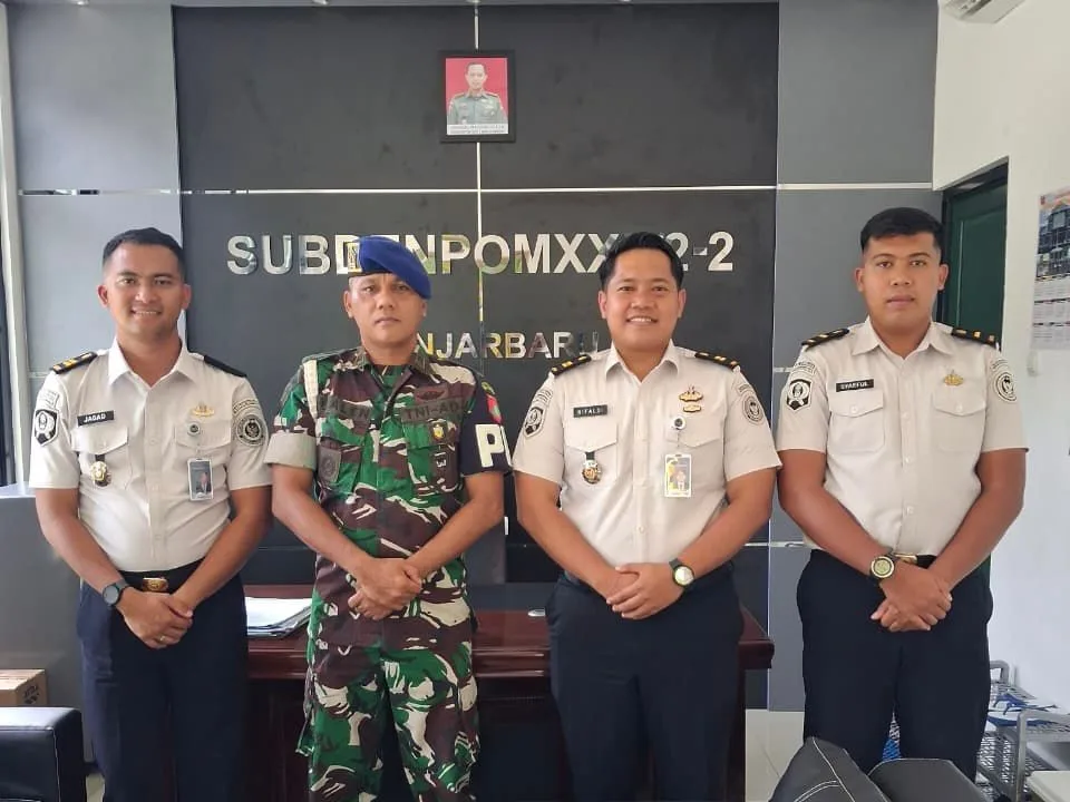 Jajaran Lapas Banjarbaru disambut langsung oleh Komandan Subdenpom Banjarbaru, Kapten Alen. Dalam pertemuan tersebut, pembahasan difokuskan pada mekanisme koordinasi penanganan Warga Binaan yang memiliki keterkaitan dengan proses peradilan militer, termasuk sinkronisasi administrasi hukum dan alur komunikasi antarinstansi.
