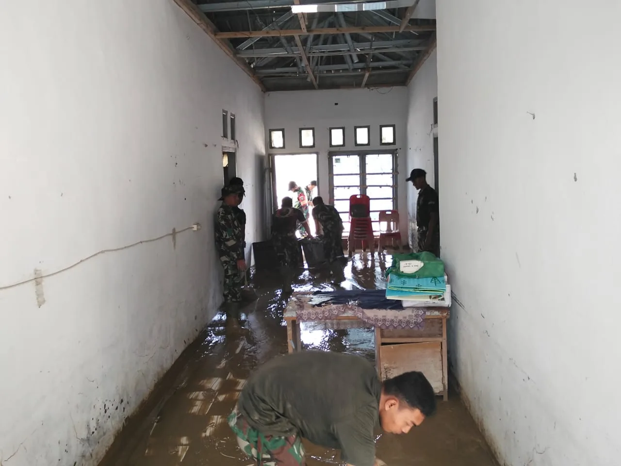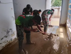 Kami tetap berkoordinasi dengan Damkar Di Kec Darul Makmur untuk Bantuan Air guna pembersihan Ruangan Pustu dan teras Pustu Yg masih di Penuhi Lumpur Ucap Danposramil kepada wak Media.