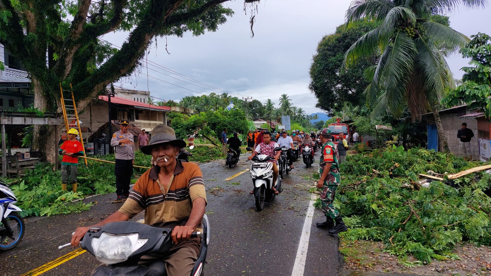 Pohon tumbang diduga akibat hujan lebat disertai angin kencang yang melanda kawasan tersebut sejak malam sebelumnya. Akibatnya, akses jalan utama yang menghubungkan beberapa kecamatan menjadi terputus sementara dan menyebabkan antrian panjang kendaraan dari dua arah.