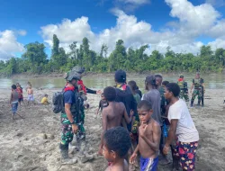 Nduga, Papua – Dalam rangka mempererat kedekatan dengan masyarakat serta meningkatkan kualitas hidup anak-anak, prajurit Satgas Pamtas Mobile Yonif 733/Masariku Titik Kuat Batas Batu melaksanakan kegiatan olahraga bersama dan edukasi hidup bersih di Kampung Mumugu, Distrik Krepkuri, Kabupaten Nduga.