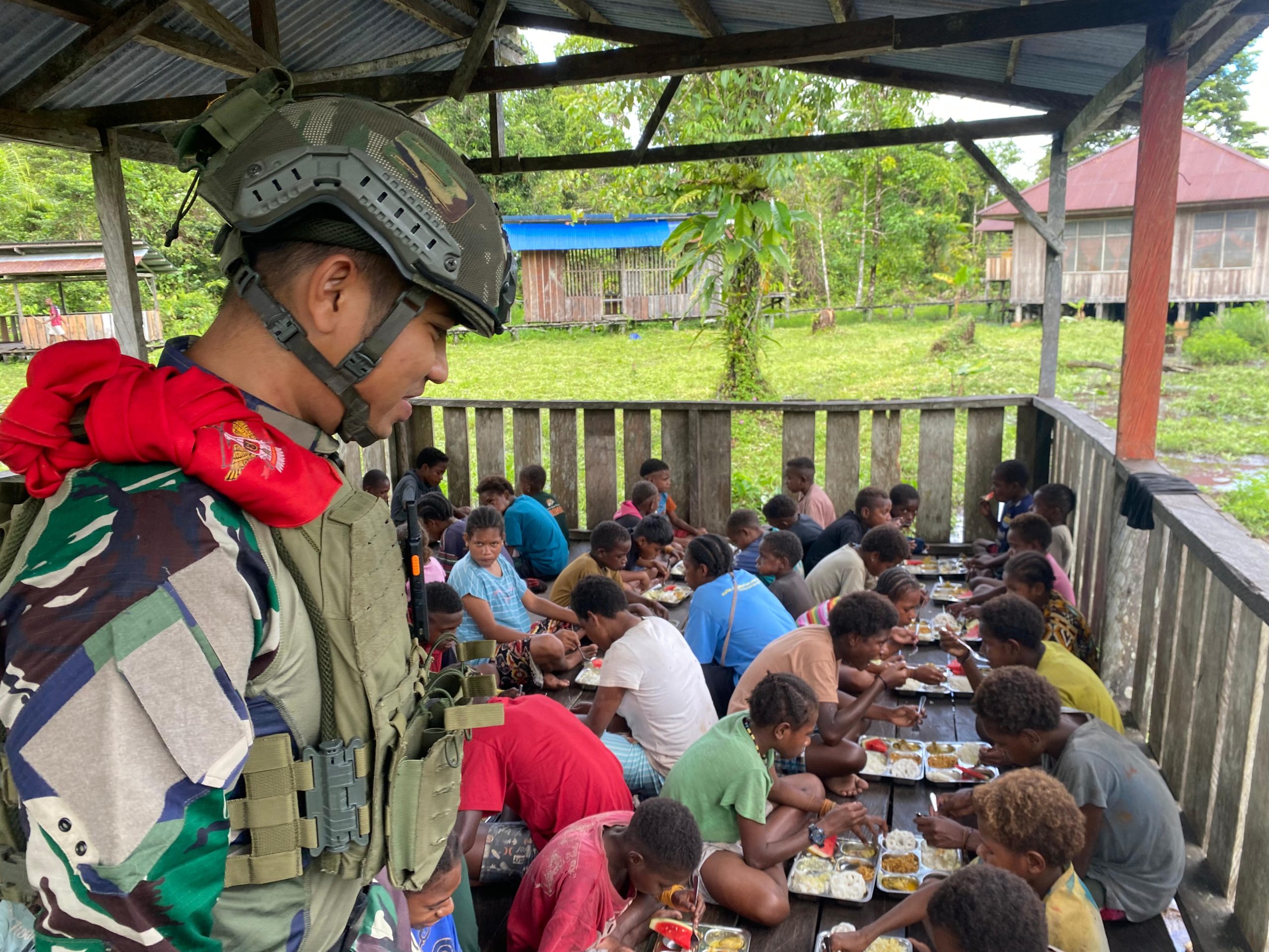 Papua – Satuan Tugas Pengamanan Perbatasan (Satgas Pamtas) Mobile Republik Indonesia-Papua Nugini (RI-PNG) Yonif 733/Masariku menggelar program “Masariku Peduli Gizi” di SD Rimba Mumugu, Kampung Mumugu 2, Distrik Sawa Erma, Kabupaten Asmat. Program ini bertujuan untuk meningkatkan status gizi anak-anak di wilayah tersebut.