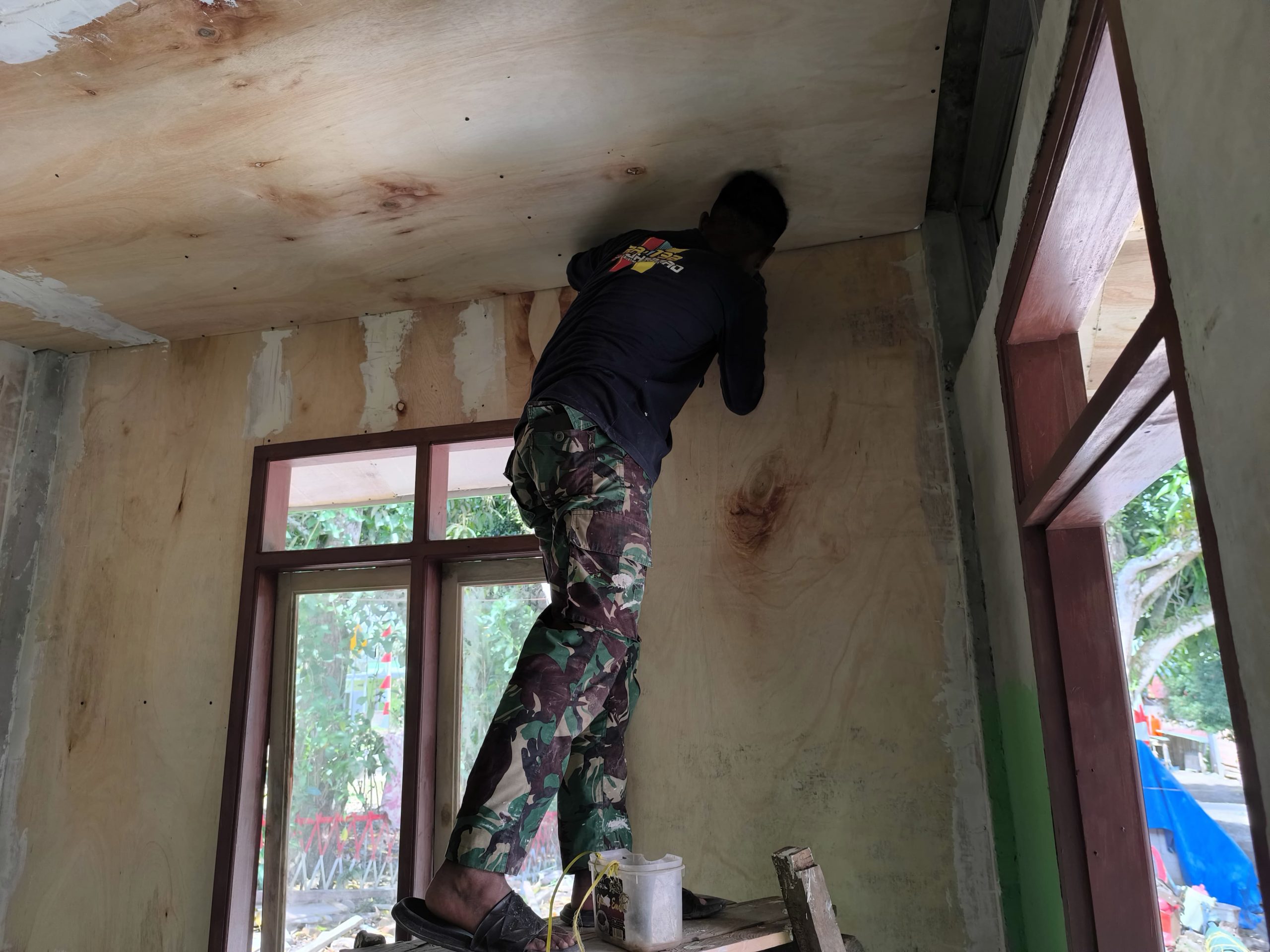 Di lokasi, terlihat semangat gotong royong begitu terasa. Warga membantu mengangkat material, sementara anggota Satgas fokus pada pekerjaan teknis. Cuaca cerah turut mendukung kelancaran pengerjaan hari ini, sehingga penyelesaian rumah Bapak Saripuddin diyakini akan tepat waktu.