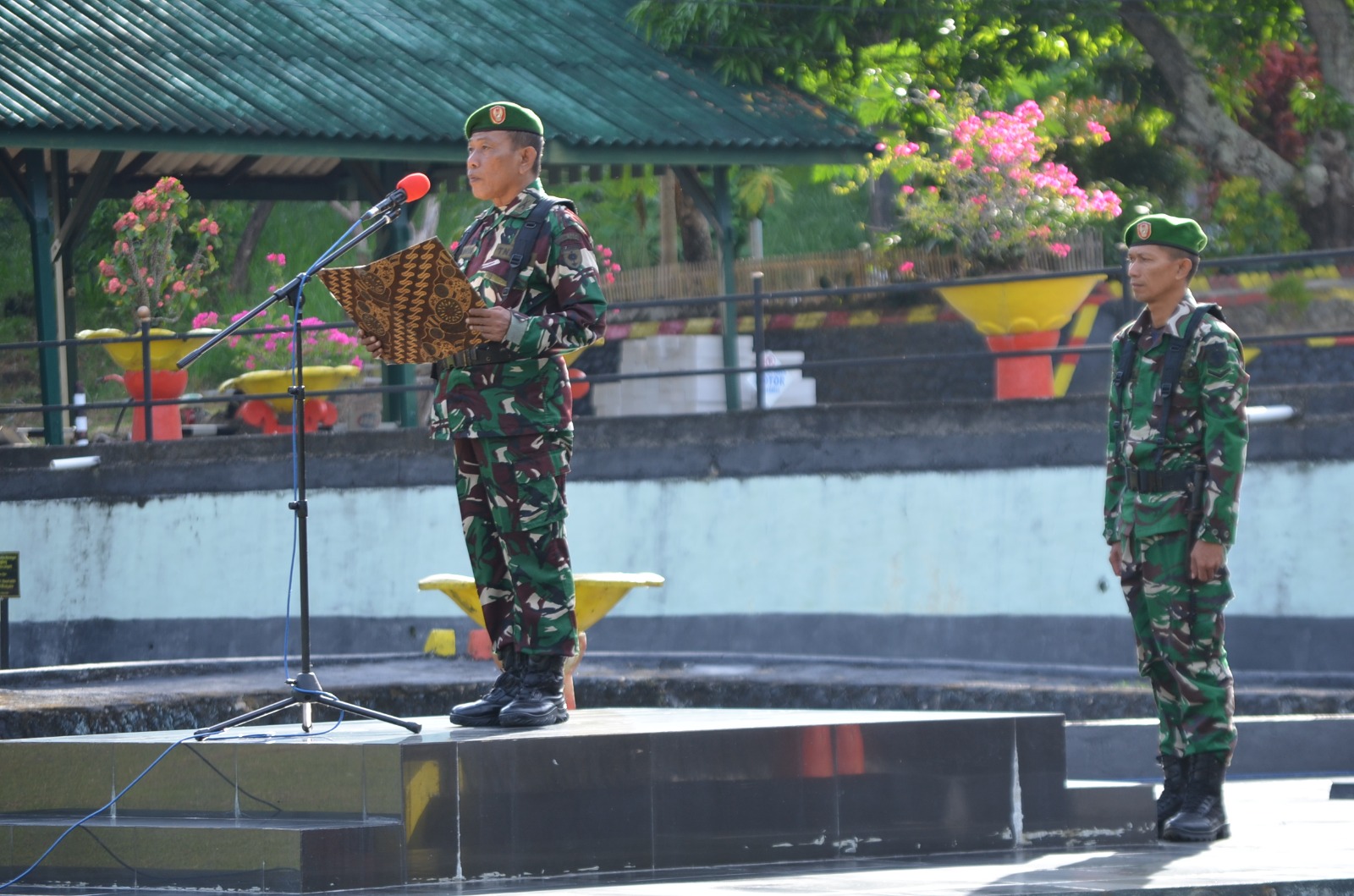 Sedangkan Komandan Upacara (Danup) Danramil 1405-02/Ujung Lettu Inf Sudarmin dan selaku Perwira Upacara (Paup) Pasipers Lettu (K) Cba Nurhaena, yang diikuti seluruh Anggota dan PNS Kodim 1405/Parepare di Lapangan Upacara Makodim 1405/Parepare Jln. Jenderal Ahmad Yani Km-4 Kelurahan Lapadde, Kecamatan Ujung, Kota Parepare. Senin (8/9/2025)