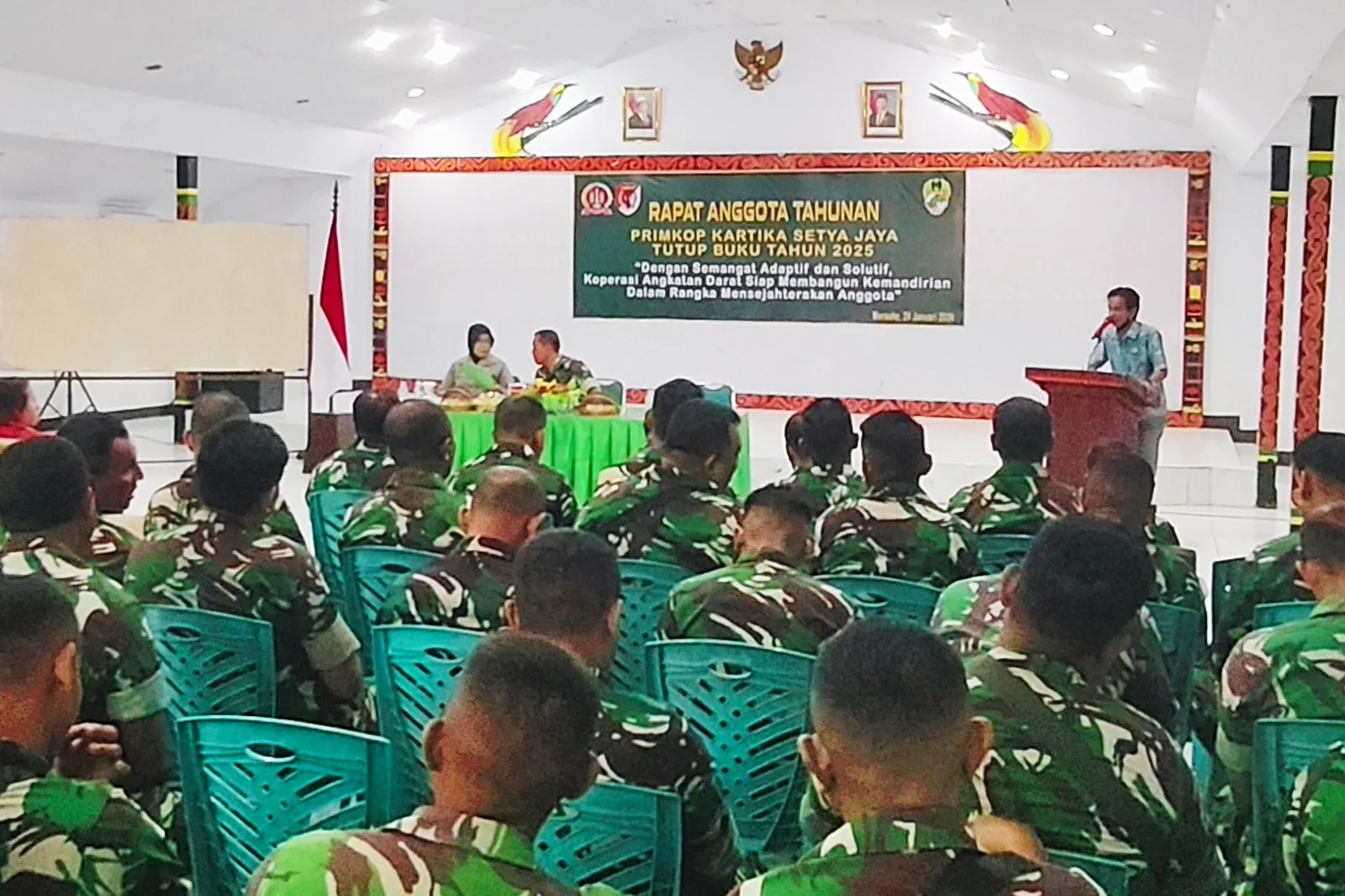 Merauke – Primkop Kartika Setya Jaya Kodim 1707/Merauke menggelar Rapat Anggota Tahunan (RAT) Tutup Buku Tahun 2025 bertempat di Aula Anim Ha Kodim 1707/Merauke, Jln. Raya Mandala, Kabupaten Merauke – Provinsi Papua Selatan. Kamis (29/1/26).