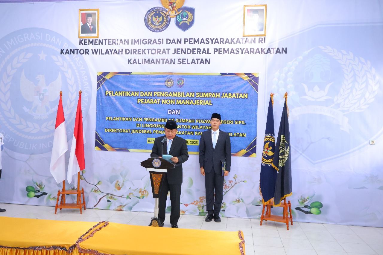 Pelantikan tersebut dipimpin langsung oleh Kepala Kantor Wilayah Direktorat Jenderal Pemasyarakatan (Ditjenpas) Kalimantan Selatan, Mulyadi, dan diikuti oleh 33 orang pegawai dari berbagai UPT Pemasyarakatan di wilayah Kalimantan Selatan, termasuk Kevin Aqmal Fernando dan Sarif Hidayat dari Rutan Pelaihari.