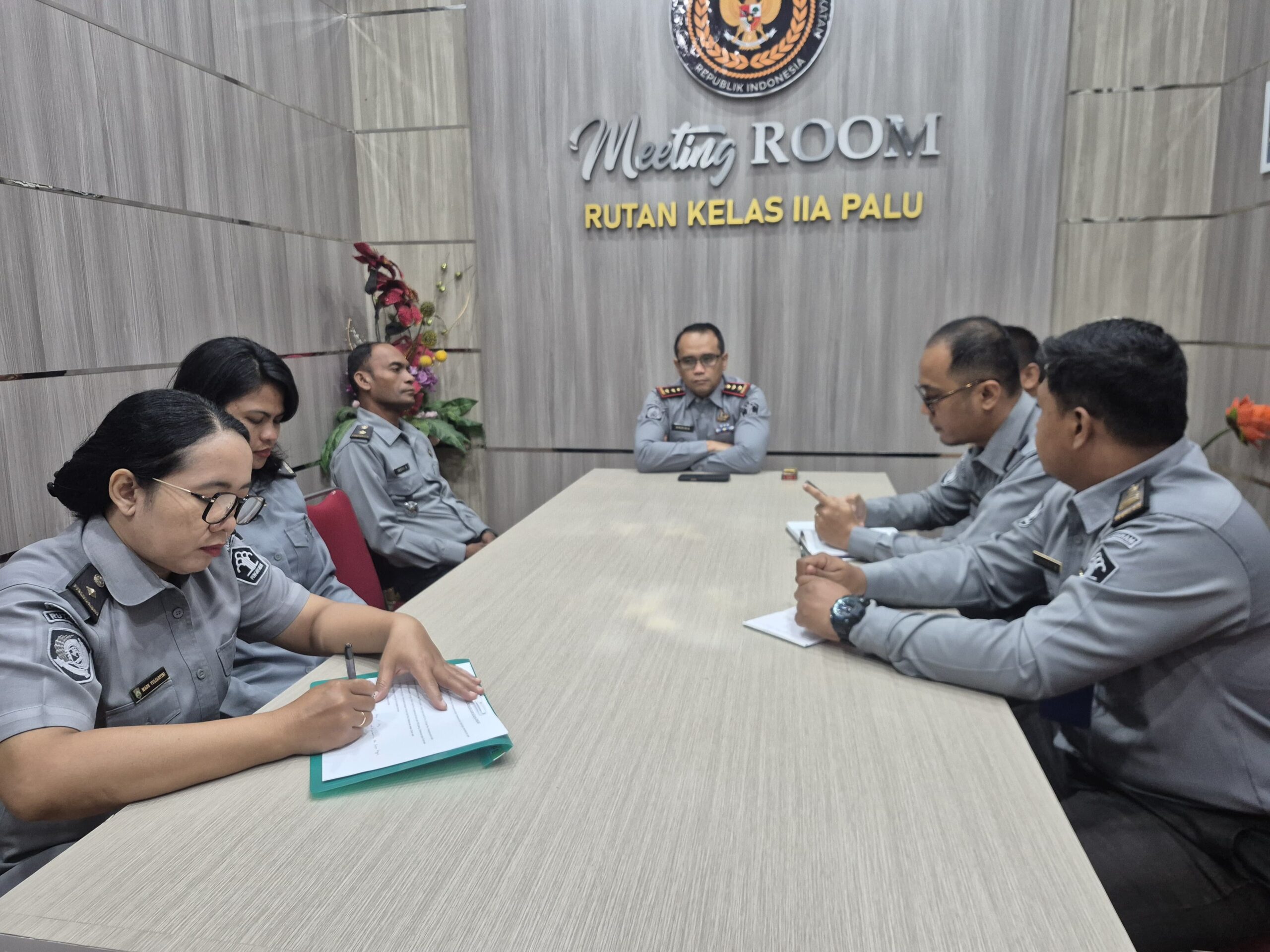 Bertempat di Meeting Room Rutan Palu, Andika membahas dan meninjau semua lini pekerjaan mulai dari bidang pengamanan, pelayanan tahanan, pengelolaan, dan bimbingan kerja guna menganalisa tugas dan fungsi agar tetap bisa berfungsi secara optimal.