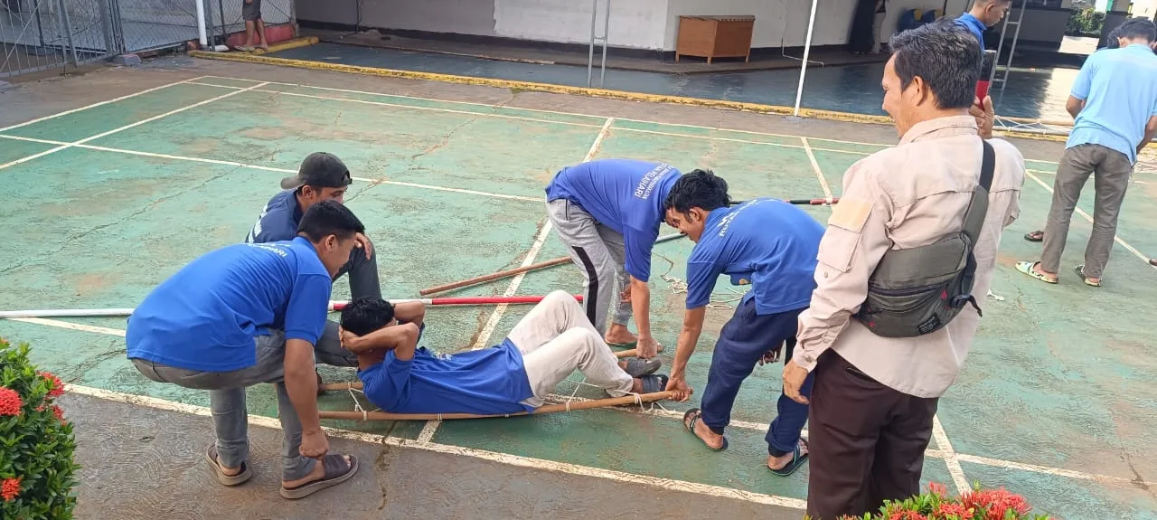 Latihan dipandu dua pelatih Pramuka, Firmansyah dan Syamsudinnor, yang memberikan materi praktik simpul serta pembuatan tandu darurat. Pembelajaran difokuskan pada penguasaan teknik dasar pertolongan darurat sekaligus penanaman kedisiplinan dan kerja sama antar peserta.