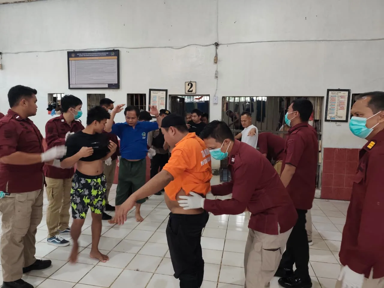Penggeledahan diawali dengan pemeriksaan badan terhadap Warga Binaan, kemudian dilanjutkan dengan pemeriksaan seluruh barang dan sudut ruangan di kamar hunian. Dari kegiatan tersebut, petugas menemukan sejumlah benda terlarang yang berpotensi mengganggu keamanan, yakni 3 buah amplas, 1 botol parfum kaca, 2 buah paku, dan 1 buah penjepit kertas (paper clip). Seluruh barang temuan langsung diamankan untuk proses pendataan dan tindak lanjut sesuai ketentuan.