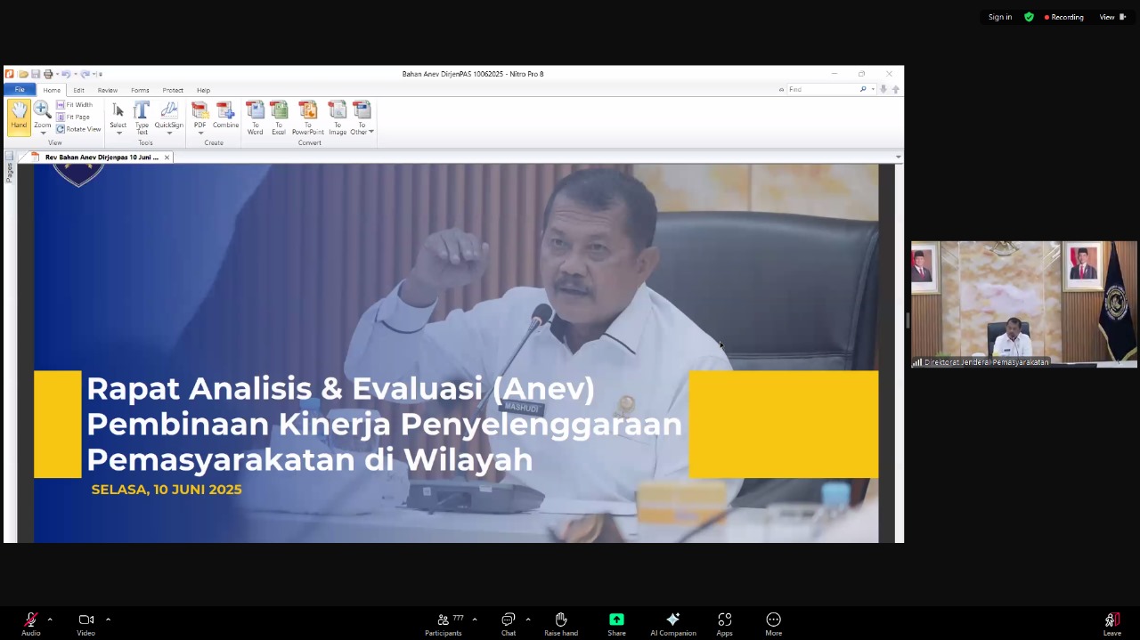 PELAIHARI, INFO_PAS – Jajaran Rutan Kelas IIB Pelaihari mengikuti Rapat Analisis dan Evaluasi (Anev) Penyelenggaraan Pemasyarakatan yang digelar Direktorat Jenderal Pemasyarakatan secara daring, Selasa (10/6). Kegiatan yang dimulai pukul 09.00 WITA ini diikuti oleh pejabat struktural dan staf dari ruang rapat Rutan Pelaihari.