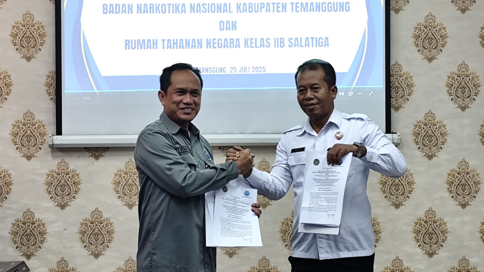 Salatiga – Memperkuat sinergi dalam upaya memberantas peredaran narkoba sesuai arahan Menteri Imigrasi dan Pemasyarakatan, Rumah Tahanan Negara (Rutan) Salatiga meneken perjanjian kerjasama dengan Badan Narkotika Nasional Kabupaten (BNNK) Temanggung. Jumat (25/07/2025).
