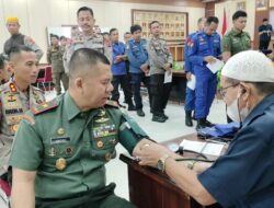 Watampone – Memperingati HUT Bhayangkara Ke-79 Tahun 2025, Komandan Korem 141/Tp Brigjen TNI Andre Clift Rumbayan, S.Sos., M.M. hadiri dan ikut mendonorkan darahnya langsung pada acara Bakti Kesehatan Donor Darah bertempat di Aula Sarja Arya Racana Mapolres Bone Jl. Yos Sudarso Kel. Tibojong, Kec. Tanete Riattang Timur, Kab. Bone Sul-Sel. Kamis (19/06/2025)