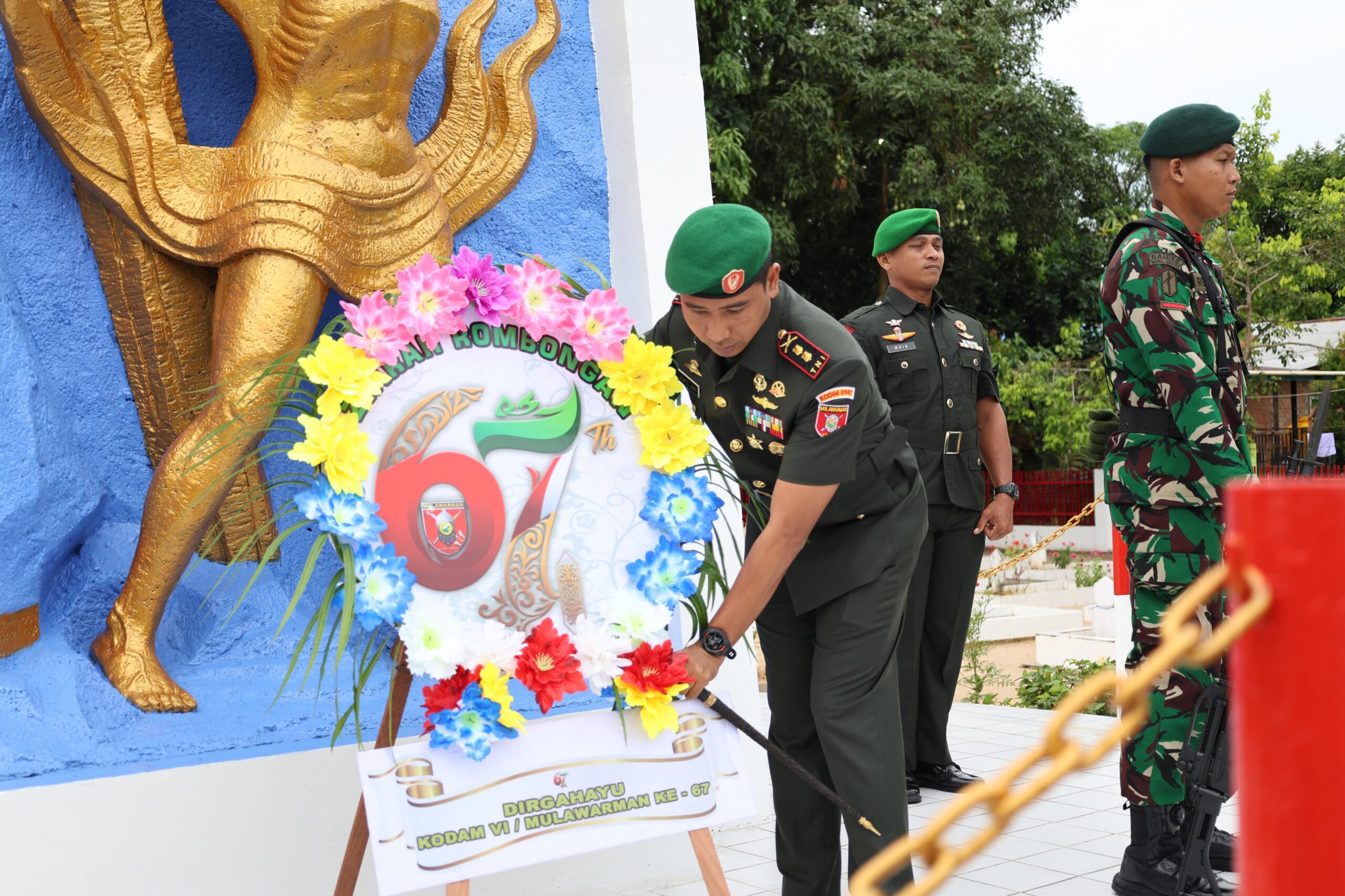 Dipimpin langsung Komandan Kodim 0907/Trk Letkol Inf Syaiful Arif,S.Sos.,M.Han.kegiatan berlangsung khidmat. Diawali penghormatan,peletakkan karangan bunga di tugu makam pahlawan, kemudian penaburan bunga yang diikuti para perwira dan anggota Persit Kartika Chandra Kirana Cab XIX Dim 0907 dan Ranting 2 Yonif 613/Rja.