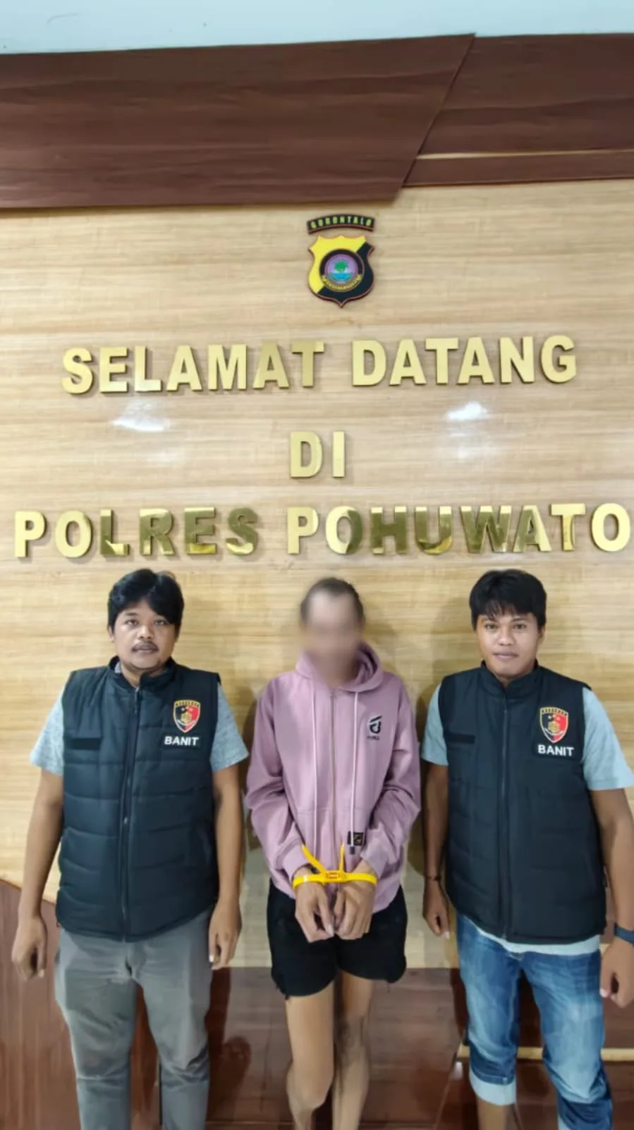 Kapolres Pohuwato AKBP Busroni, S.I.K., M.H., melalui Kasat Reskrim Polres Pohuwato, AKP Khoirunnas, S.I.K., M.H., menyampaikan bahwa saat ini terduga pelaku telah diamankan di Mapolres Pohuwato guna kepentingan penyelidikan dan penyidikan lebih lanjut.