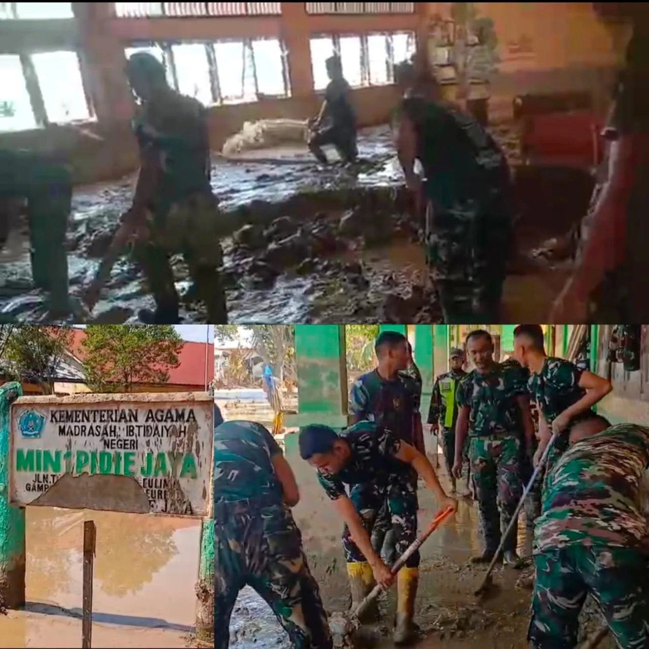 > “Kami berharap dengan percepatan pembersihan di sekolah-sekolah, termasuk MIN 1 dan MIN 4 Pidie Jaya, kegiatan belajar mengajar dapat kembali berjalan normal. TNI akan terus hadir dan bekerja bersama rakyat dalam setiap kondisi, termasuk saat menghadapi bencana alam,” tambahnya.