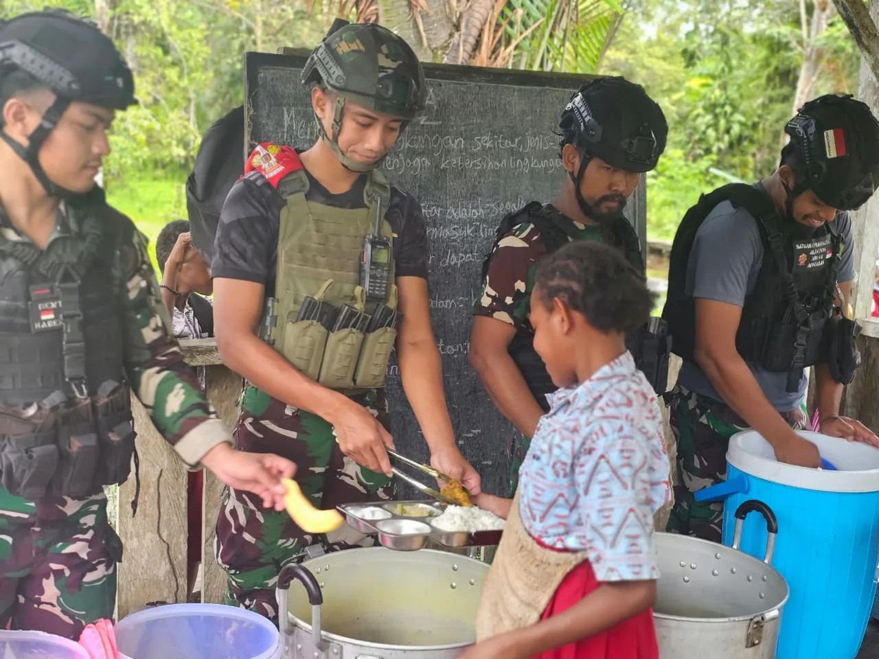 Papua, 22 Oktober 2025 – Di tengah tugas menjaga keamanan perbatasan, Satuan Tugas Pengamanan Perbatasan (Satgas Pamtas) Mobile Yonif 733/Masariku menunjukkan sisi humanisnya dengan menggelar program “Masariku Peduli Gizi” di Sekolah Dasar (SD) Rimba YPPK Yan Smith Mumugu 2, Mumugu, Papua. Program ini menjadi bukti nyata bahwa TNI hadir bukan hanya sebagai penjaga kedaulatan, tetapi juga sebagai bagian dari solusi untuk meningkatkan kesejahteraan masyarakat.