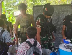 Papua — Dalam upaya meningkatkan kualitas gizi dan kesehatan anak-anak di wilayah perbatasan, Satgas Pamtas Mobile Yonif 733/Masariku melaksanakan kegiatan sosial bertajuk “Masariku Peduli Gizi” di SD Rimba YPPK Yan Smith Mumugu 2, Distrik Sawa Erma, Kabupaten Asmat, Papua, pada Kamis (6/11/2025).