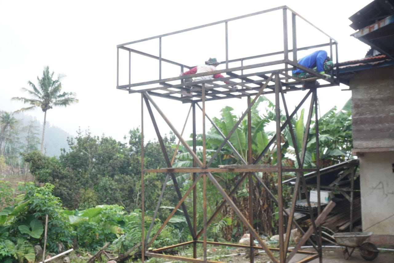 Kegiatan pengecatan dilakukan secara gotong royong oleh para prajurit Satgas TMMD, mulai dari bagian atas tower hingga detail interior kolam, guna memberikan perlindungan.