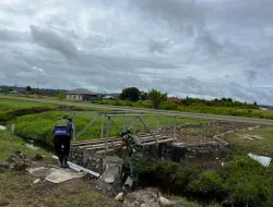 Pekerjaan hari ini difokuskan pada tahap pengelasan besi serta penimbunan tanah di sekitar jembatan guna memperkuat struktur sekaligus mempermudah akses bagi masyarakat sekitar.