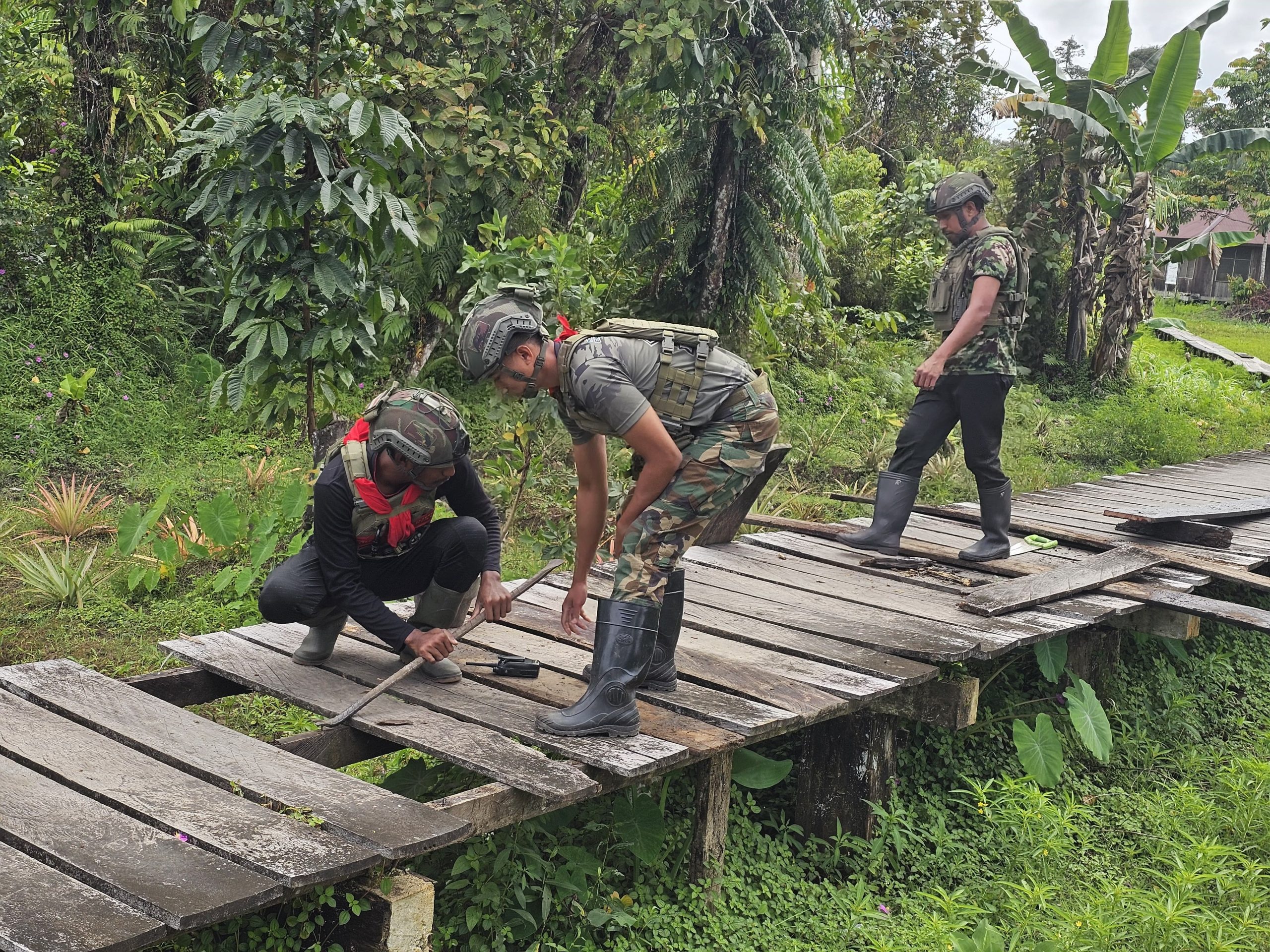Perbaikan dilakukan dengan memanfaatkan bahan seadanya seperti papan, paku, dan material lokal lain yang tersedia di sekitar kampung. Meskipun dengan peralatan sederhana, para prajurit bersama warga bahu-membahu agar jembatan tersebut dapat kembali digunakan dengan aman.