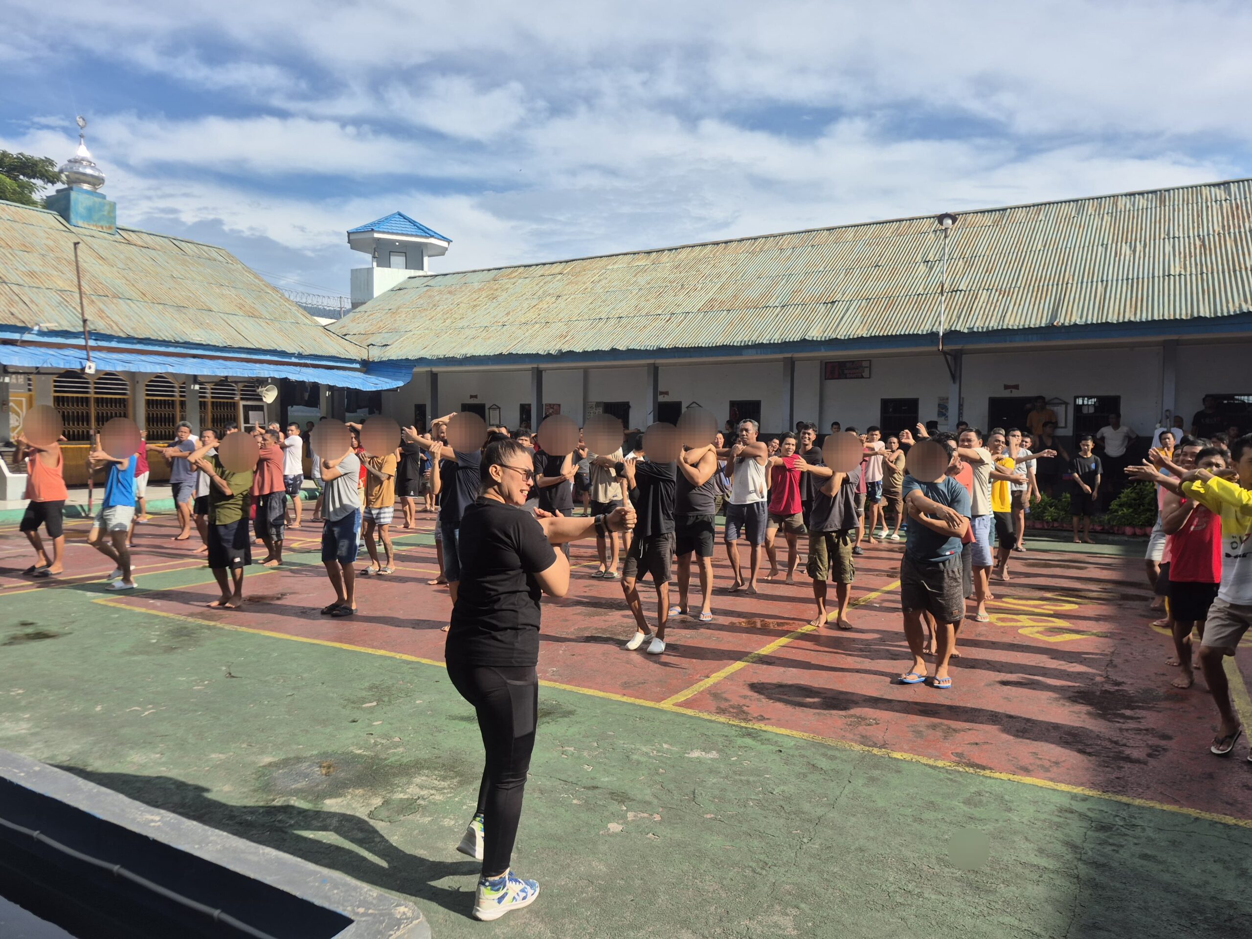 Salah satu bentuk upaya Rutan Palu dalam menjaga kesehatan warga binaannya adalah dengan menyajikan senam pagi rutin bersama seperti yang dilakukan pada hari ini, Jum’at (6/7/2025) di lapangan olahraga blok hunian Rutan Palu.