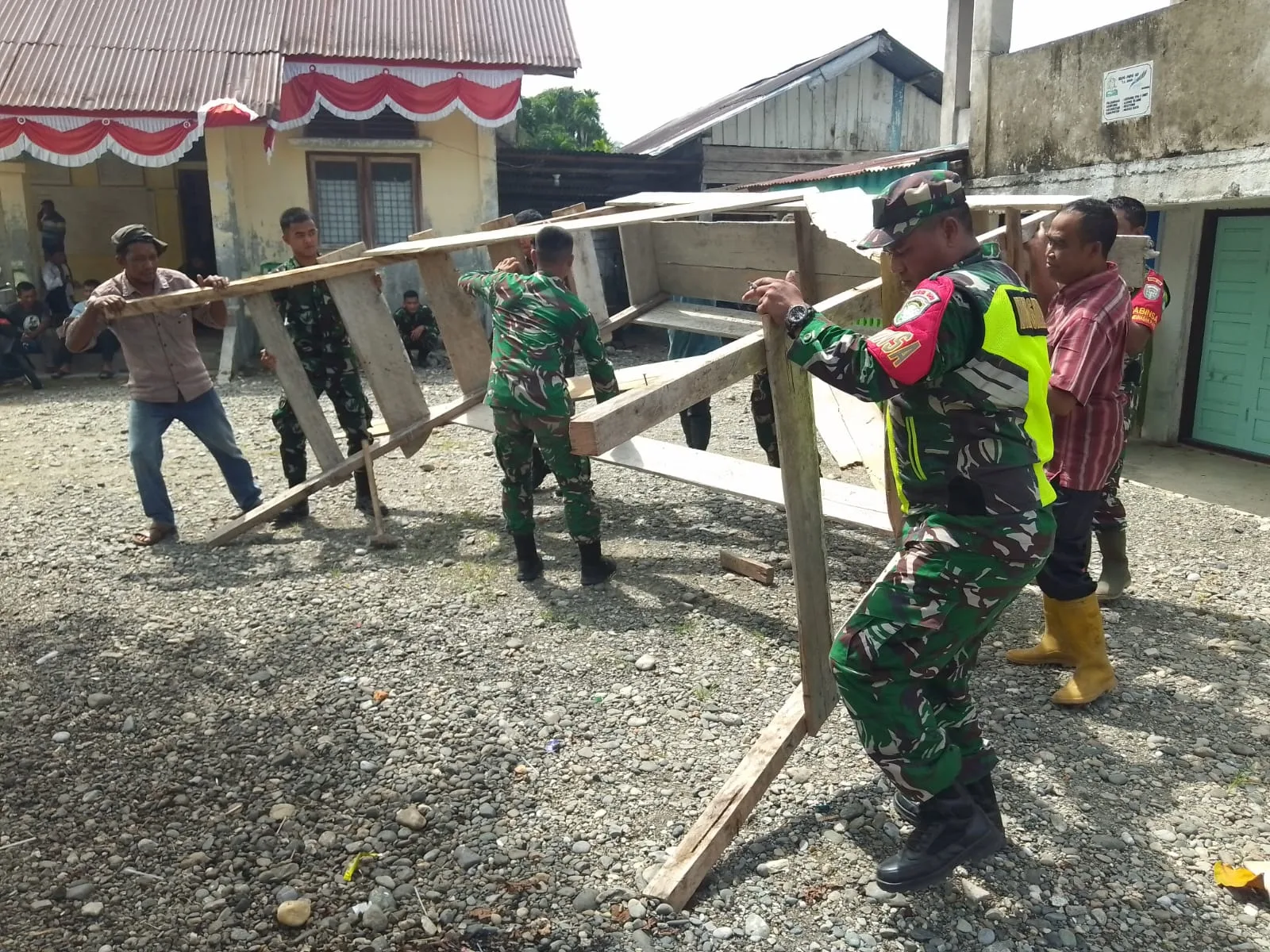 Semangat Bergotong Royong antara Babinsa Koramil 04 Beutong Dengan Warga Desa Binaan nya