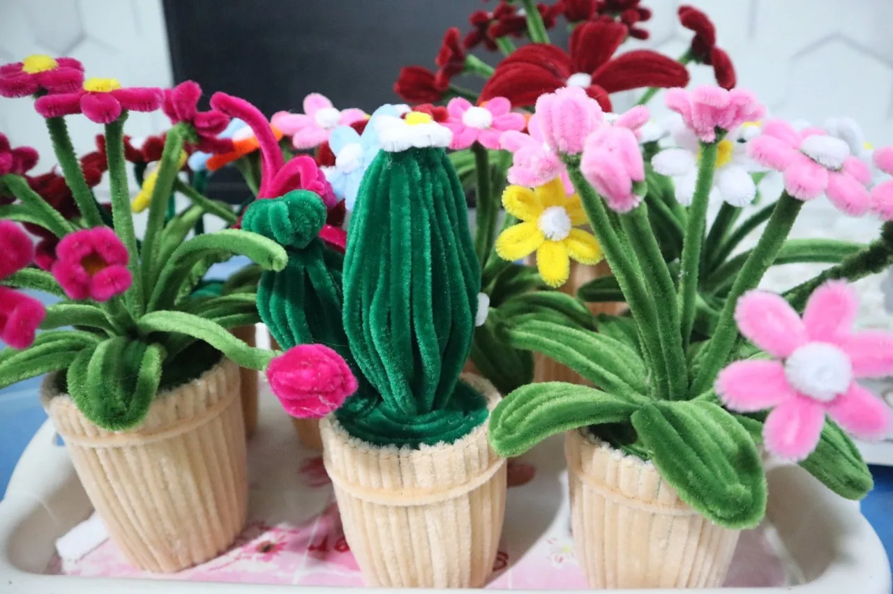 Setiap rangkaian bunga dirancang menyerupai tanaman hias mini yang cocok digunakan sebagai dekorasi meja kerja, ruang tamu, ataupun kamar pribadi. Tampilan warnanya yang beragam menjadikan produk ini tidak hanya artistik, tetapi juga memberikan kesan hangat dan segar bagi ruangan.