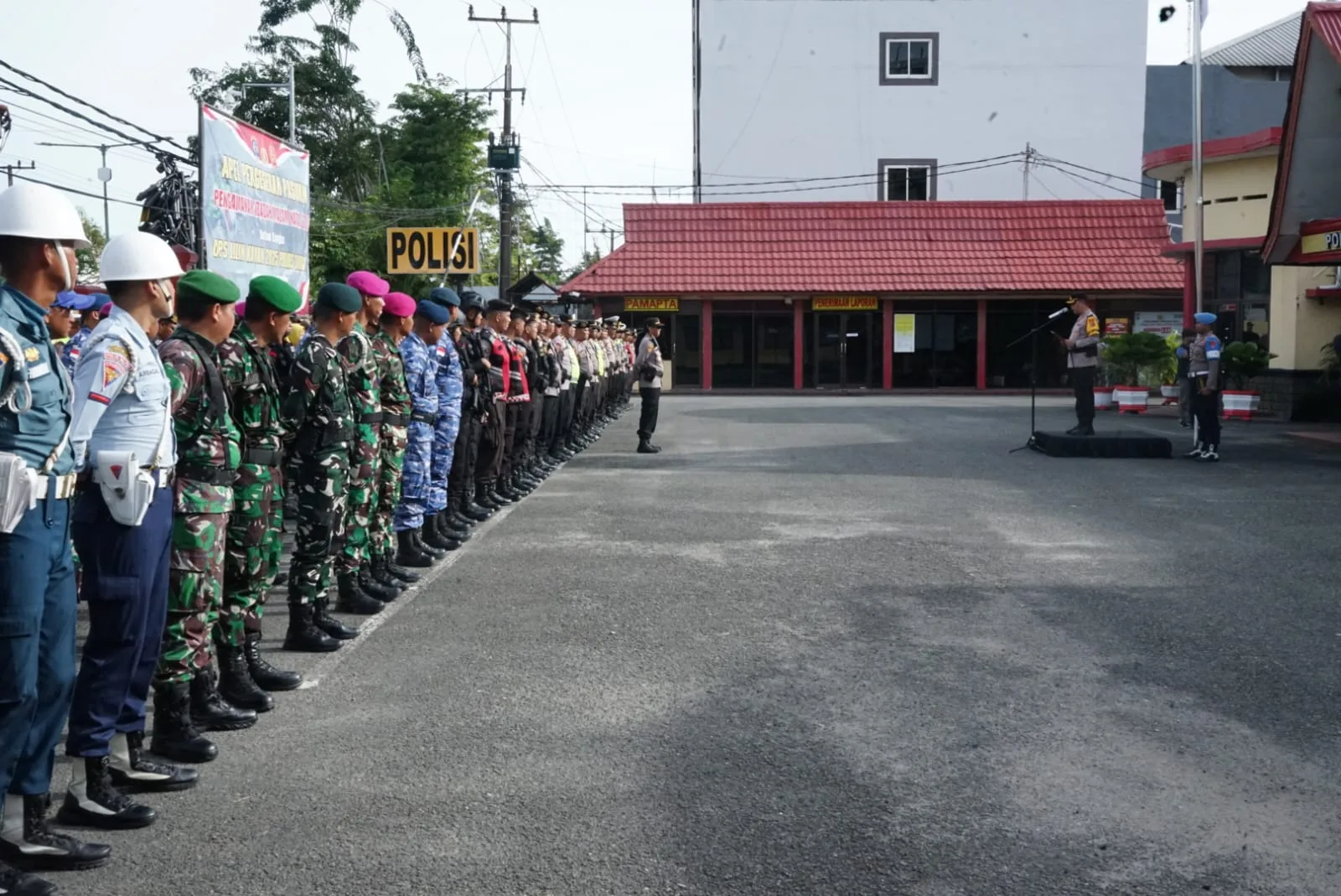 Tarakan – Kodim 0907/Trk.mengikuti Apel Gabungan dalam rangka kesiapan pengamanan malam Pergantian Tahun Baru 2026 di halaman Mapolres Tarakan,Jl.Yos Sudarso Kel.Karang Rejo,Kec.Tarakan Barat,Rabu(31/12/2025).