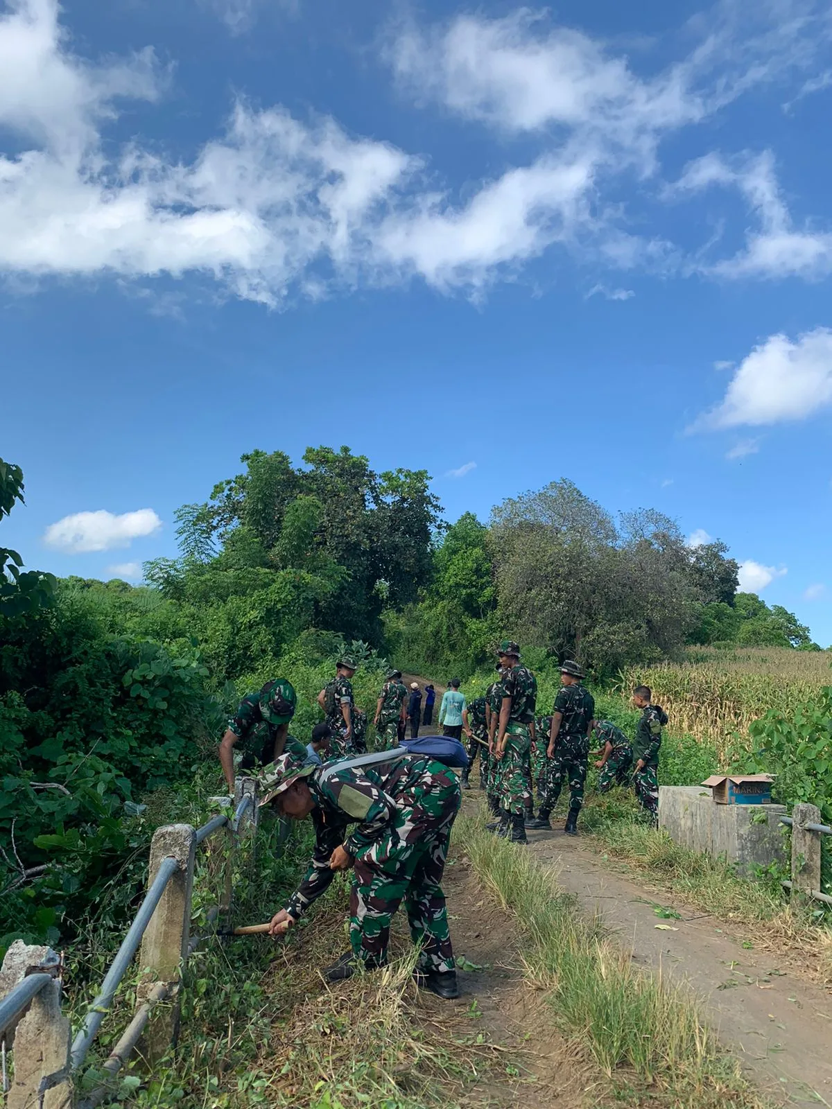 Sejak pagi, prajurit dan warga telah berkumpul membawa perlengkapan kerja seperti sapu, parang, cangkul, dan alat kebersihan lainnya. Semangat gotong royong terlihat jelas ketika seluruh peserta bergerak bersama membersihkan sampah, menata lingkungan, serta memangkas rumput yang mulai liar.