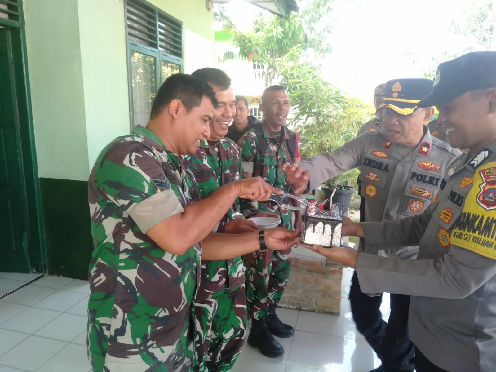 BATANG ANAI, – Pagi Hari Penuh Kehangatan Dan Kebersamaan Terasa Di Markas Koramil 09/Batang Anai Kodim 0308/Pariaman, Saat Wakapolres Poltes Padang Pariaman Kompol Indra S.H, M.M. Di Dampingi Kapolsek Batang Anai Iptu Wadriadi, S.H., Wakapolsek Batang Anai Iptu Junaidi Salat, S.H., Kanitreskrim Polsek Batang Anai Ipda Verdiansyah, S.H., beserta Personil Polsek Batang Anai Dalam Rangka Memberikan Suprise Dan Ucapan Selamat Dirgahayu Tentara Nasional Indonesia (TNI) ke – 80 kepada Koramil 09 Batang Anai.