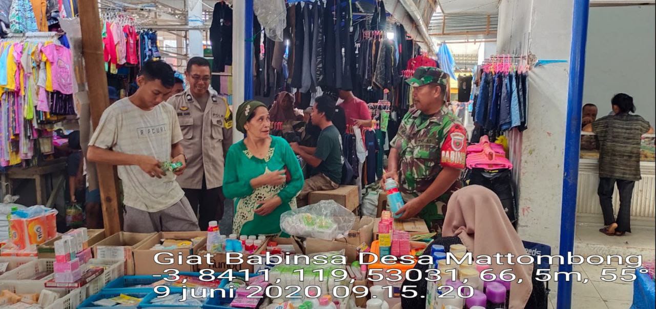 Pinrang_ Babinsa Koramil-02/Mattiro Sompe Kodim 1404/Pinrang Sertu Muh. Nasir bersama Bhabinkamtibmas Polsek Mattiro Sompe memantau langsung harga dan ketersediaan bahan pokok (sembako) di pasar Kelurahan Langga Kecamatan Mattiro Sompe Kabupaten Pinrang, (10/06/2025).