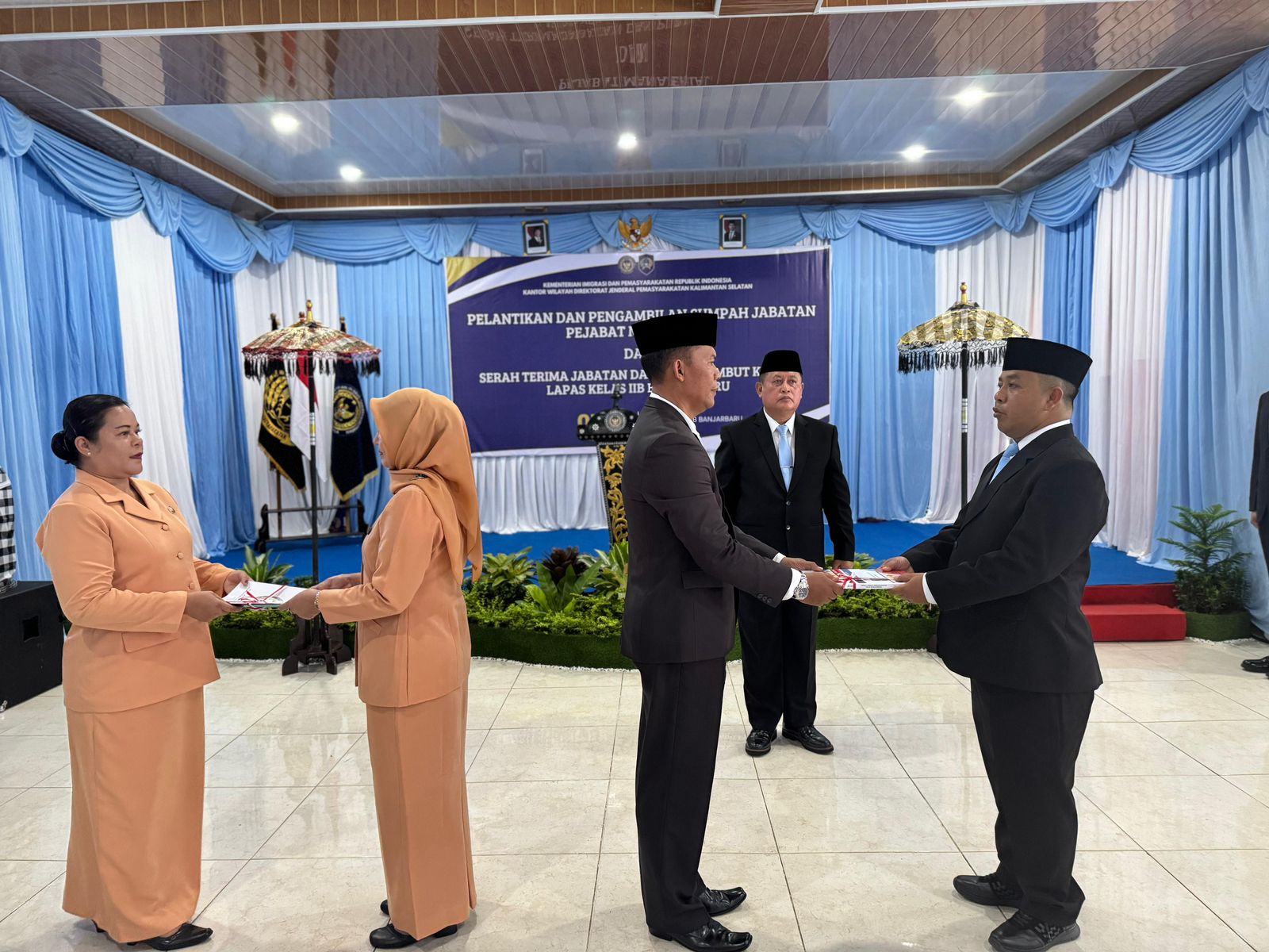 Tidak hanya sendirian, I Made Supartana dilantik bersama Kalapas Kelas IIA Banjarmasin, Akhmad Herriansyah. Prosesi pelantikan diawali dengan pengucapan sumpah jabatan oleh para pejabat yang dilantik, dipandu langsung oleh Kakanwil. Dilanjutkan dengan penandatanganan berita acara pelantikan yang menandai pengesahan jabatan secara administratif. Kemudian serah terima jabatan sekaligus pisah sambut Kepala Lapas Banjarbaru dan Ketua Dharma Wanita Persatuan (DWP) Lapas Banjarbaru.