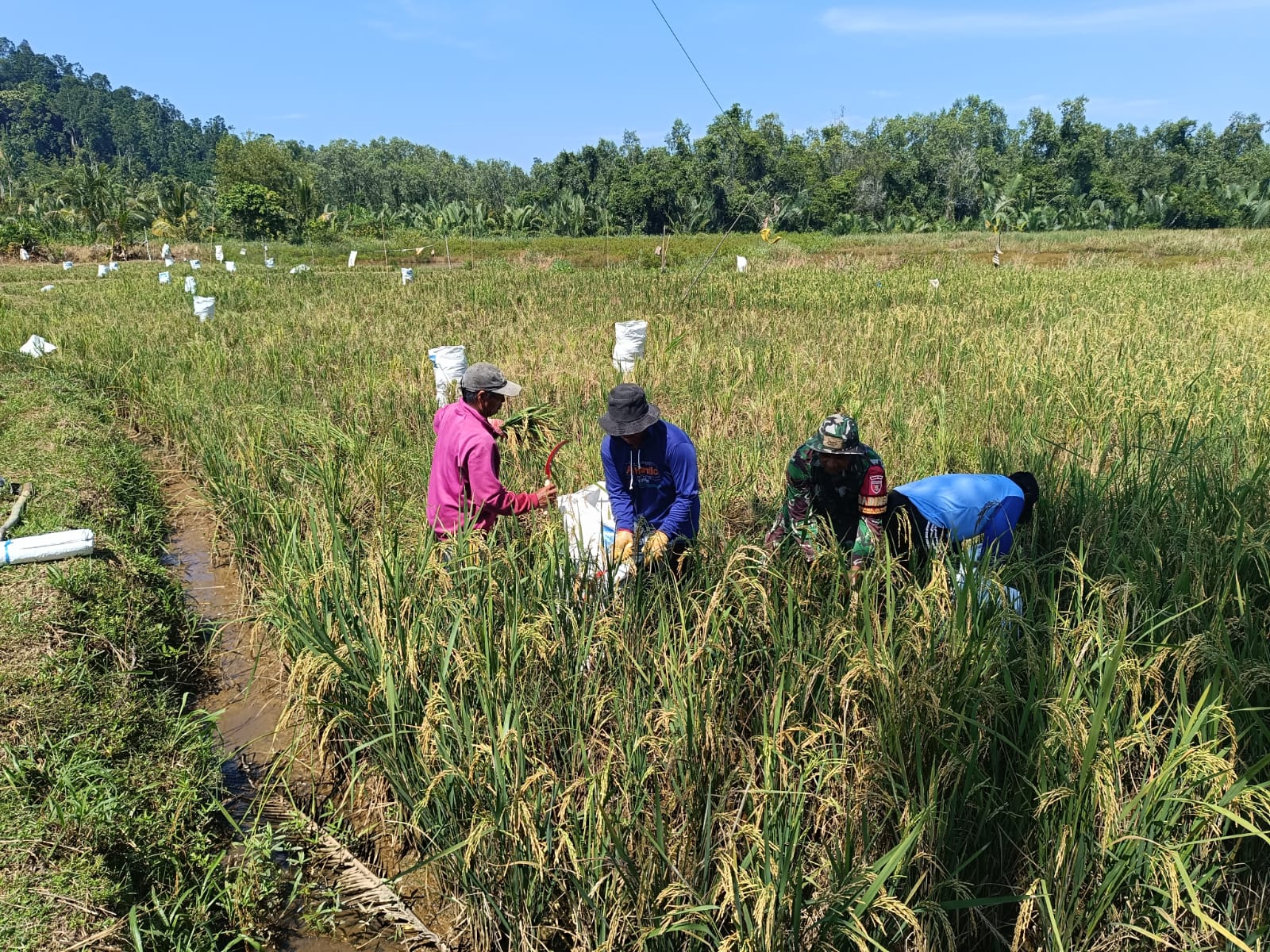 “Sudah menjadi tugas kami untuk mendampingi para petani, kami selalu melakukan pendampingan mulai dari pengolahan, penanaman padi sampai dengan panen seperti sekarang ini,” jelas Babinsa.