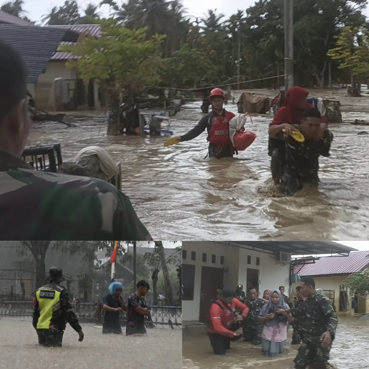 Prajurit TNI diterjunkan untuk melakukan evakuasi warga, membantu penyelamatan barang-barang penting, mengamankan lokasi terdampak, serta memantau perkembangan debit air sungai guna mengantisipasi banjir susulan.