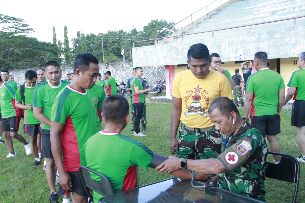 Dalam pelaksanaan kegiatan kesegaran jasmani tersebut, personel terlebih dahulu melaksanakan pengecekan kesehatan berupa tensi oleh Tim Kesehatan dari Poskes Kodim 1404/Pinrang dilanjutkan pengisian blangko Samapta serta mendapat pengawasan dari Tim Jasrem 141/Toddopuli.
