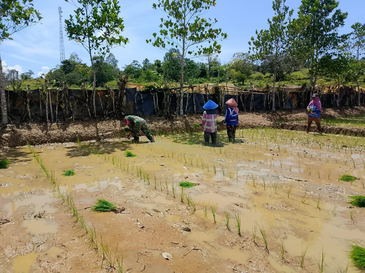“Ini sudah merupakan tugas kami sebagai aparatur kewilayahan membantu para petani dalam hal pertanian, seperti kegiatan tanam padi yang sedang saya kerjakan merupakan wujud kemanunggalan TNI- Rakyat,” ujarnya