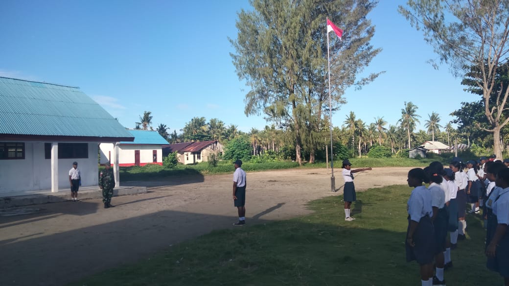 Raja Ampat,PBD-Babinsa koramil 1805-04/Misol, Kopka Ali maja melaksanakan Upacara Bendera pada SMP Negeri 20 Raja Ampat, Kabupaten Raja Ampat. Upacara ini berlangsung tertib dan lancar, diikuti oleh murid dan para guru SMP Negeri 20 Wejim.