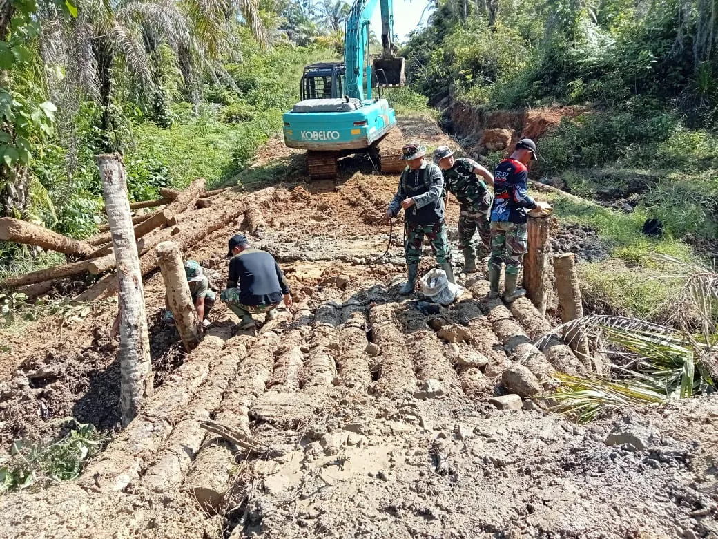 Simeulue – Personil Satgas TMMD Kodim 0115/Simeulue, Korem 012/Teuku Umar melaksanakan pembuatan jembatan kayu di Desa Ana’o, Kecamatan Teupah Selatan, Kabupaten Simeulue. Minggu (19/10/2025).
