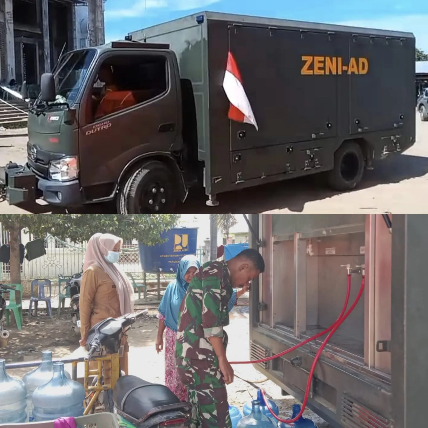 Pidie Jaya — Untuk memenuhi kebutuhan air bersih siap konsumsi bagi warga terdampak bencana, TNI Angkatan Darat kembali menambah satu unit armada Water Treatment yang dioperasionalkan di wilayah Kabupaten Pidie Jaya, Senin (19/1/2026).