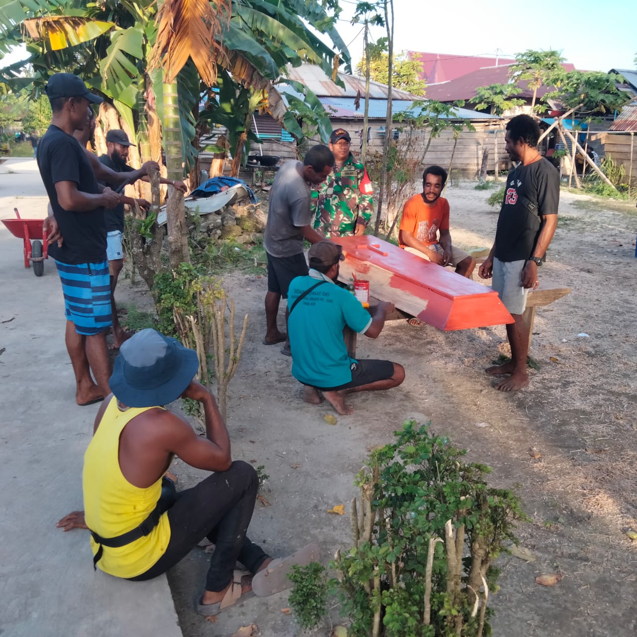 Raja Ampat,PBD-Kopka Ali Maja anggota Koramil 1805-04/Misol Kodim 1805/Raja Ampat yang menjabat sebagai Babinsa Kampung Wejim Distrik Kepaulawan Sebilan Kab. Raja Ampat melayat ketempat warga yang sedang berduka cita karena salah satu anggota keluarganya meninggal dunia, Sabtu (03/05/2025).