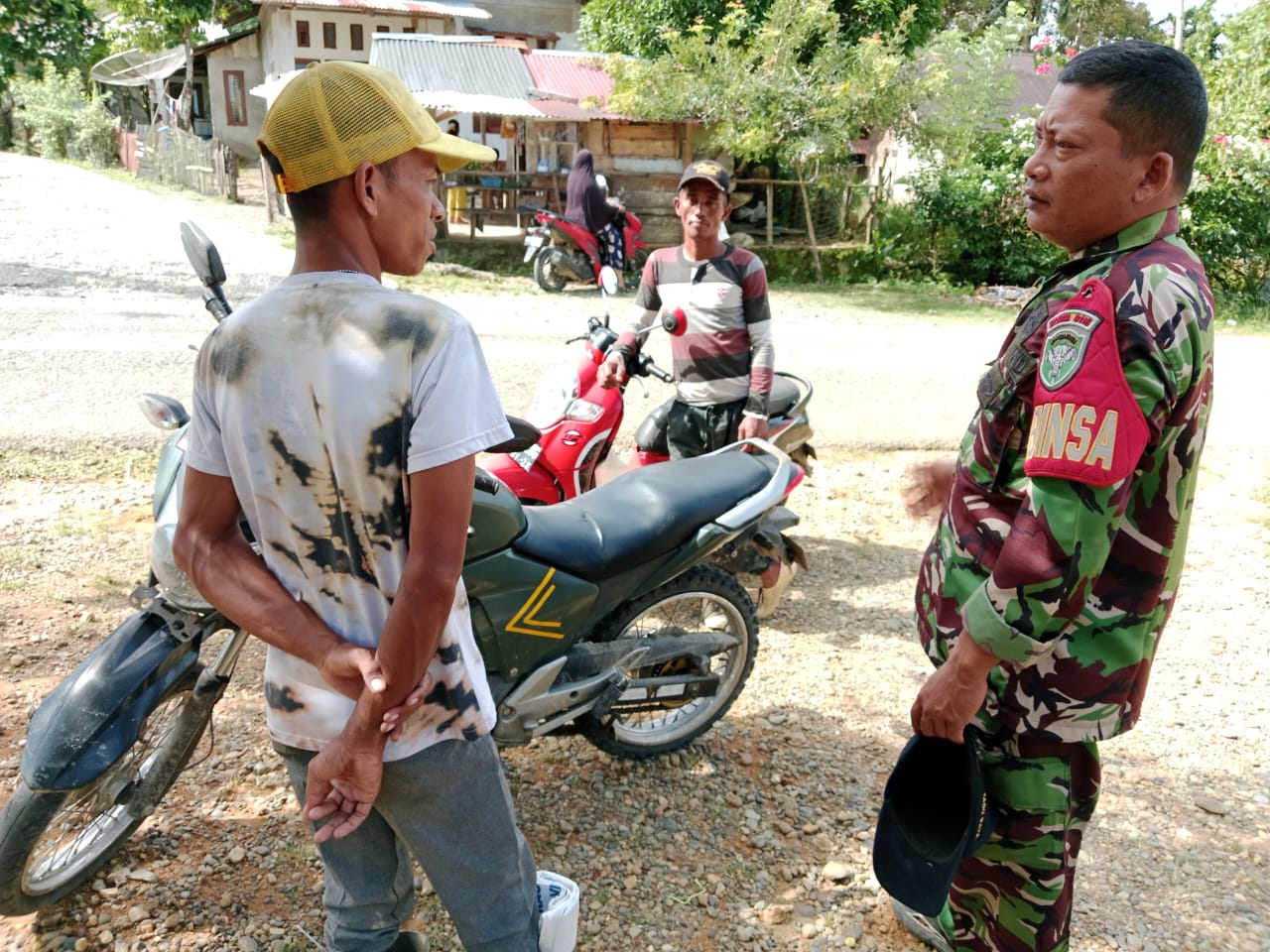 NAGAN RAYA- Babinsa Posramil Ramil Tadu Raya Kodim 0116/Nara Koptu Agus Zulfikar melaksanakan Komunikasi Sosial bersama masyarakat di desa Sarah Mantok (18-06-2025).