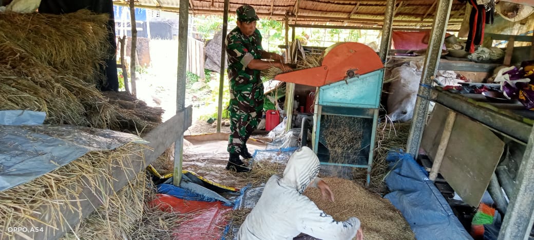 Selain itu, dirinya menyampaikan terima kasihnya kepada Serda Megi selaku Babinsa yang sudah mendampingi serta ikut membantu dalam proses perontokan padi hasil panen miliknya.