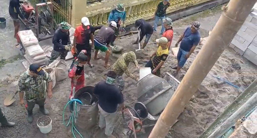 Pinrang_ Bentuk keikhlasan dan kepedulian terhadap tempat ibadah, Warga bersama anggota Kodim 1404/Pinrang bergotong-royong melakukan pengecoran lantai 2 Masjid Nurul Imam Kodim 1404/Pinrang yang terletak di Kelurahan Laleng Bata Kecamatan Paleteang Kabupaten Pinrang, Sabtu (12/07/2025).