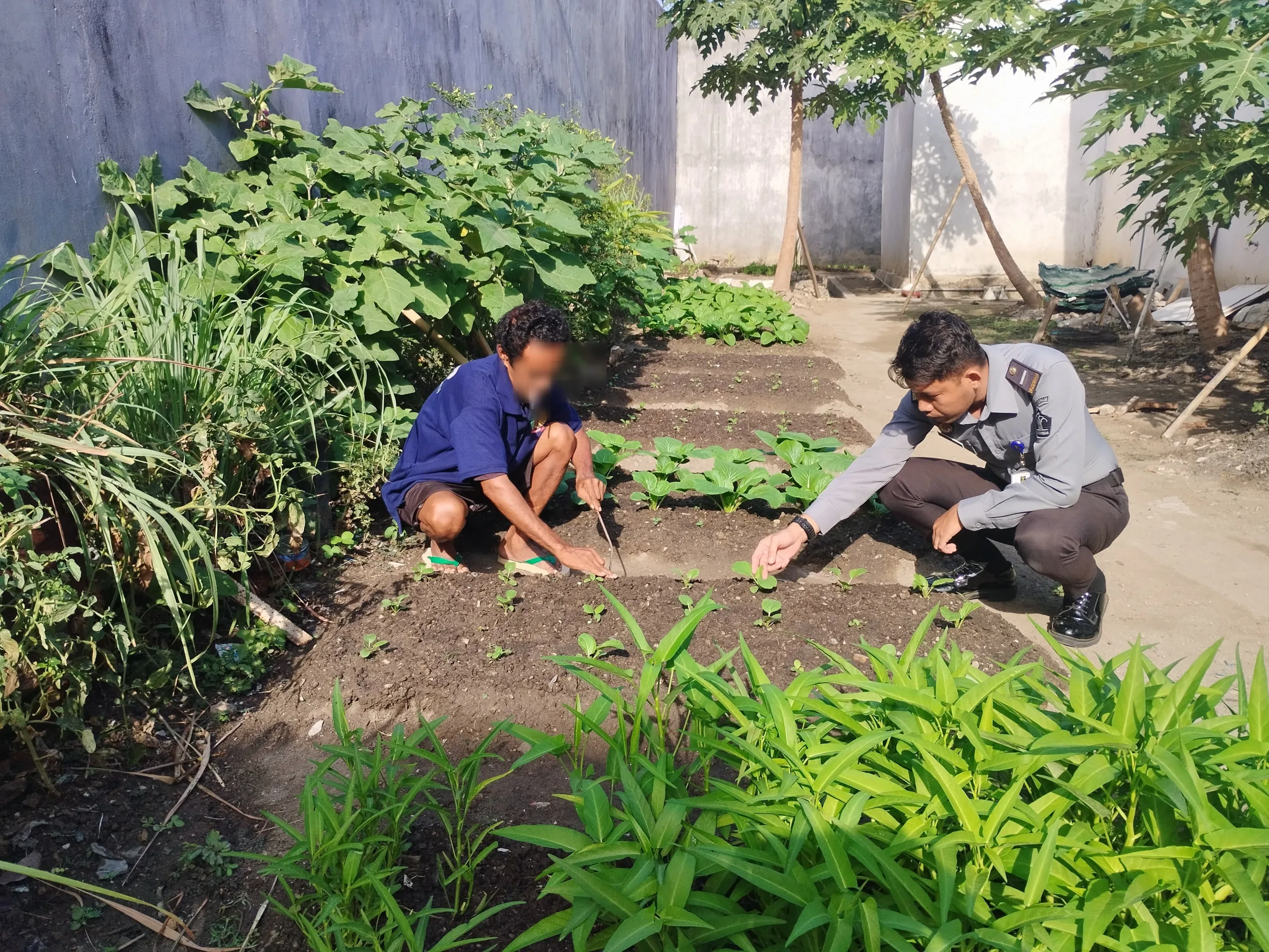 Setiap hari, WBP melakukan perawatan rutin terhadap tanaman sawi. Kegiatan ini meliputi penyiraman teratur, pemupukan dengan pupuk organik, serta pengendalian hama dan penyakit tanaman secara manual.