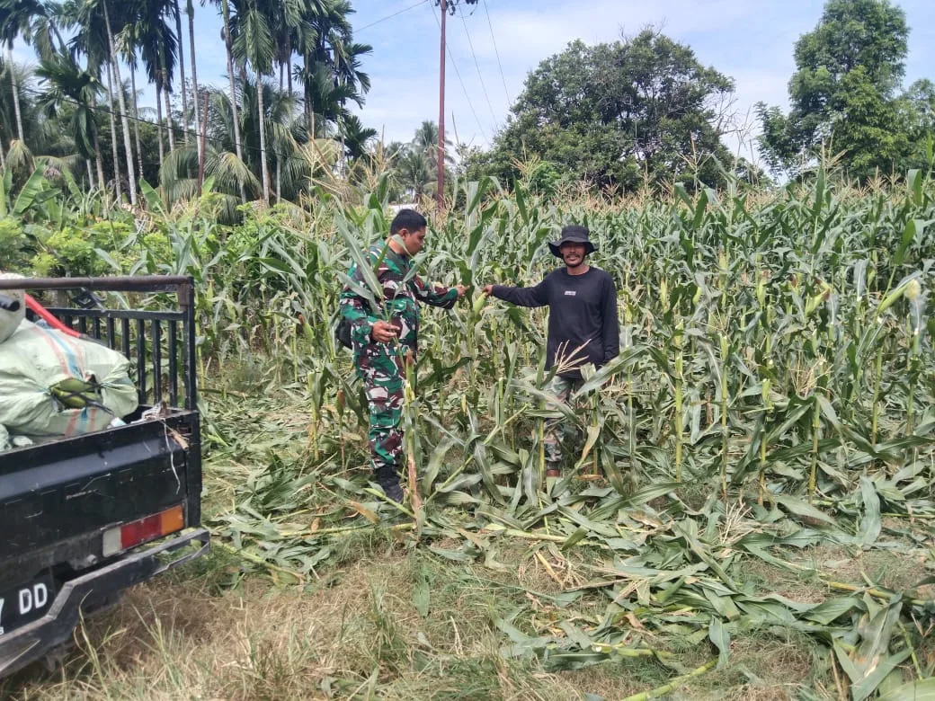 membantu petani memanen jagung di lahan pertanian milik warga binaan di Desa Kabu Tunong, Kecamatan Senagan Timur Kabupaten Nagan Raya. Sabtu (25/10/2025).